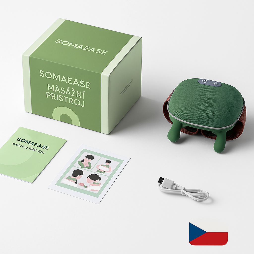 SomaEase napodobuje dotek skutečných rukou, uvolňuje svaly a díky teplu a červenému světlu přináší hlubokou relaxaci a pohodu – bez drahých masáží.